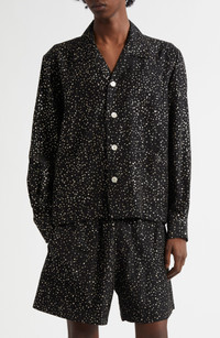 Taking design cues from '70s work jackets, this boxy button-up shirt gets a mega-glam makeover in crisp faille scattered with a constellation of party-perfect glitter dots. Front button closure Notched collar Long sleeves with button cuffs 38% polyethylene, 34% viscose, 28% nylon Dry clean Made in Portugal Designer Clothing