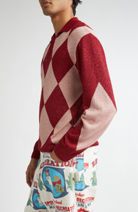 Bode Jockey Metallic Argyle Polo in Pink Multi at Nordstrom