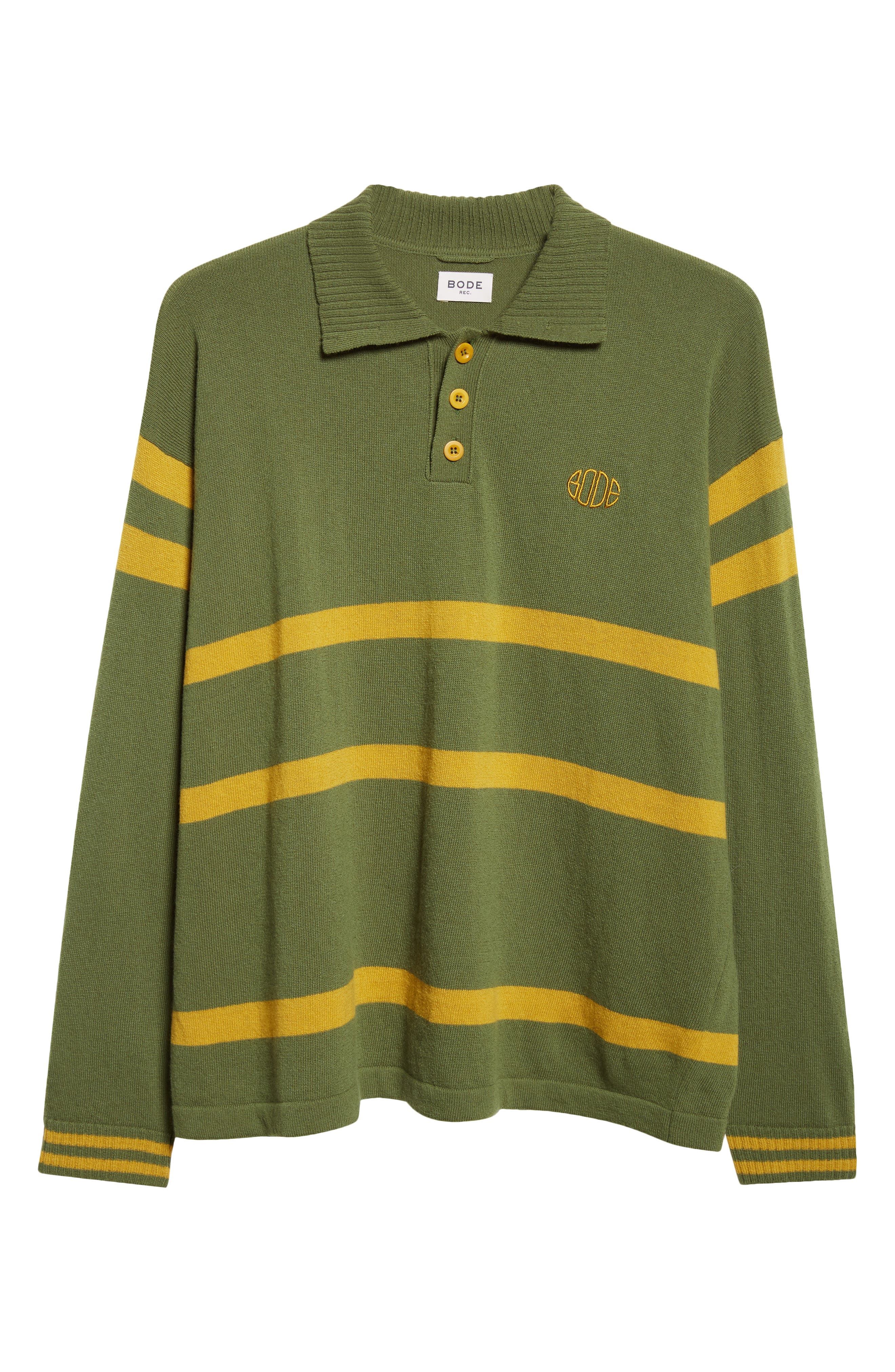 Bode Regis Virgin Wool Polo Sweater in Green at Nordstrom