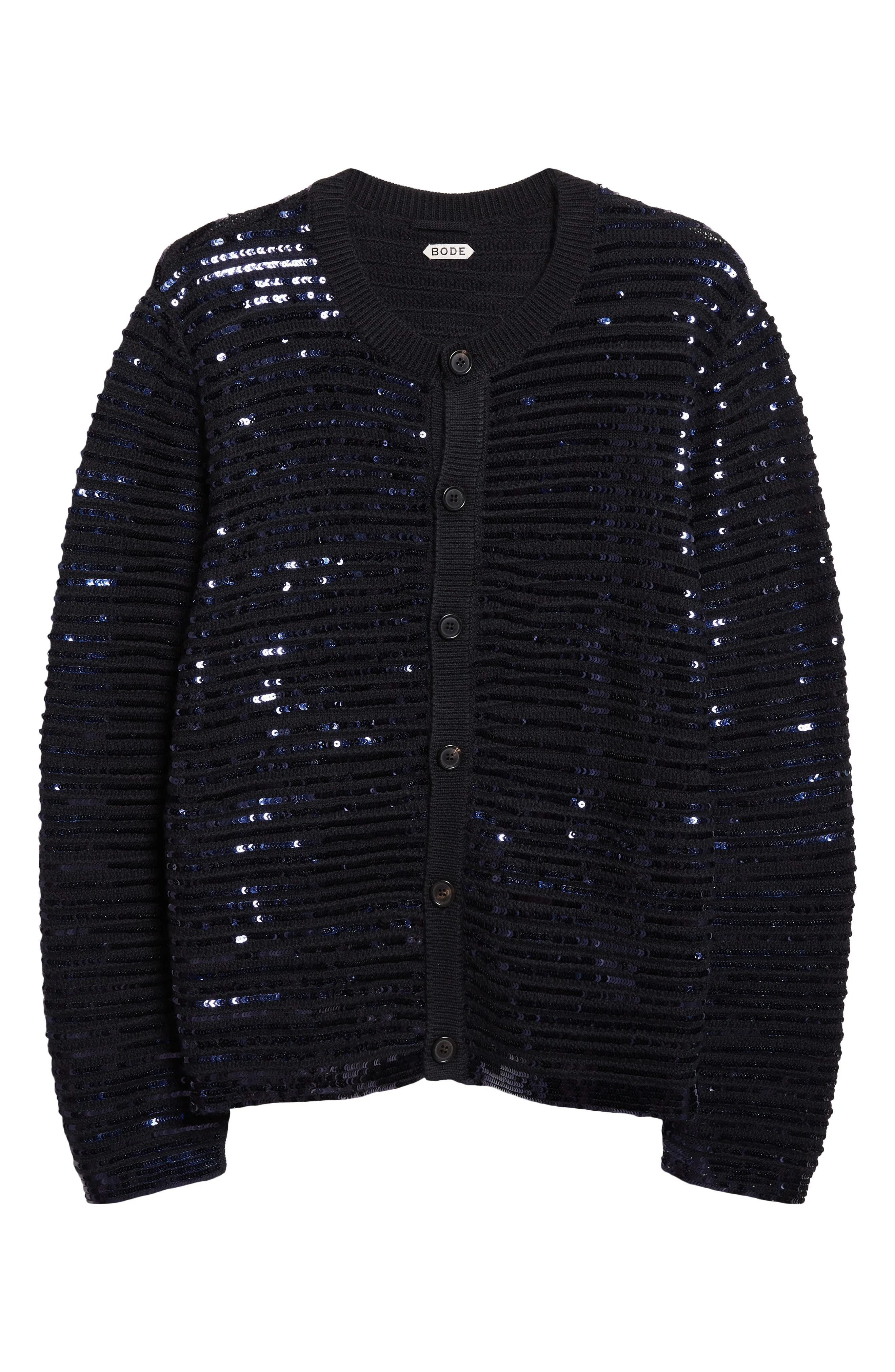Bode Sequin Spotlight Virgin Wool Cardigan in Black at Nordstrom