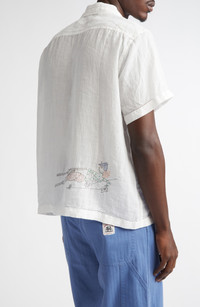 Bode Skiers Embroidered Linen Camp Shirt in White Multi at Nordstrom