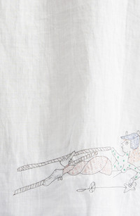 Taking inspiration from treasures of yore, this roomy, lightweight button-up made from breathable linen has the nostalgic character of a fabulous find. The intricate, single-thread embroidery is a faithful reproduction of tumbling skiers from a midcentury scarf. 26" length; 22 1/2" chest (size Medium) Front button closure Notched collar Short sleeves Chest patch pocket 100% linen Dry clean Imported Designer Clothing