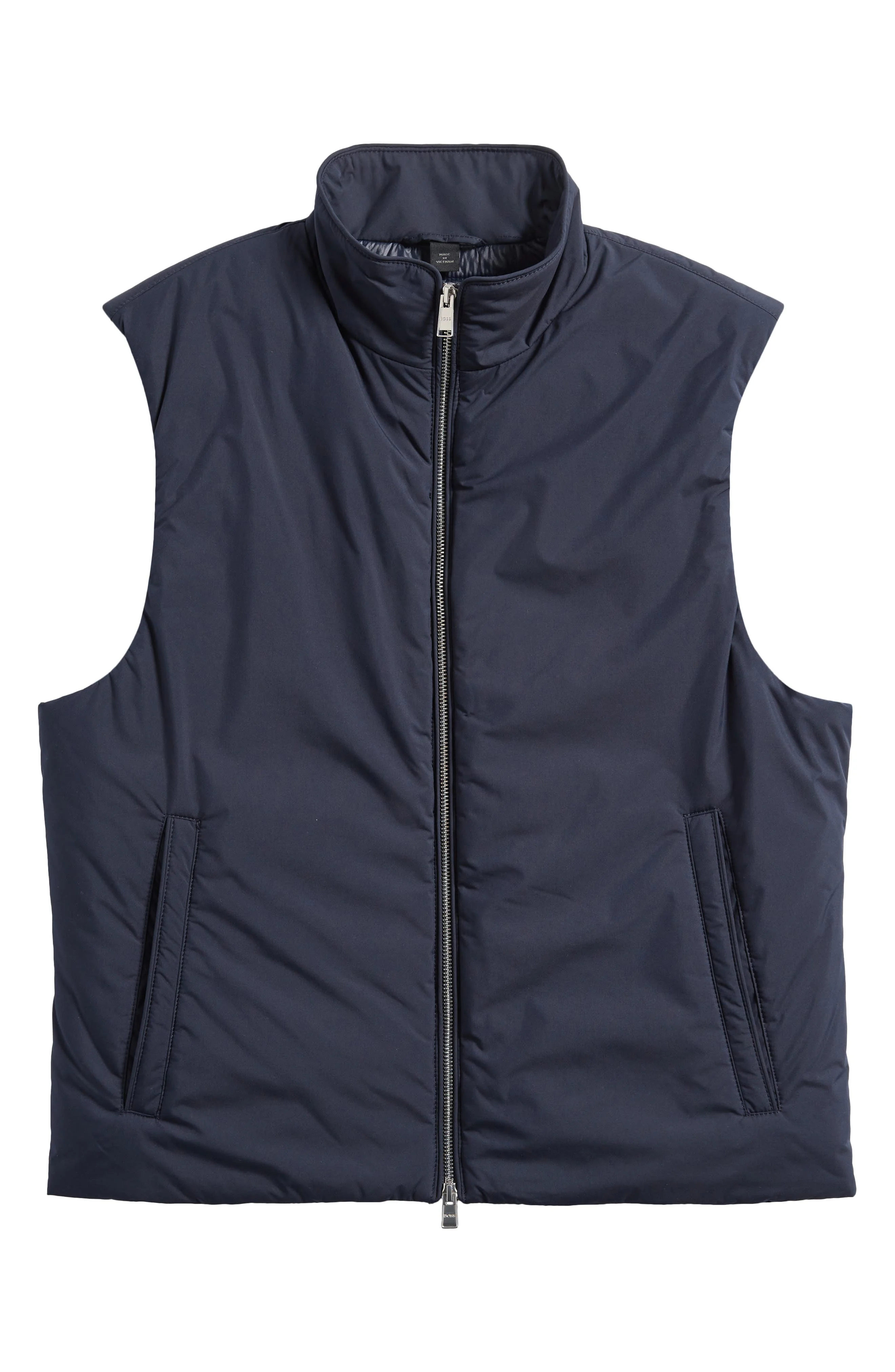 Put the perfect finishing layer on your cold-weather looks with this lightly insulated vest finished with a wind-shielding stand collar. Front zip closure Stand collar Front welt pockets Lined, with 100% polyester fill 100% polyester Machine wash, tumble dry Imported