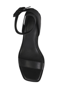 A chunky buckle stands out at the ankle of a minimalist two-strap sandal designed in rich leather and lifted by a stacked heel. 1 3/4" heel Adjustable ankle strap with buckle closure Leather upper, lining and sole Made in Spain