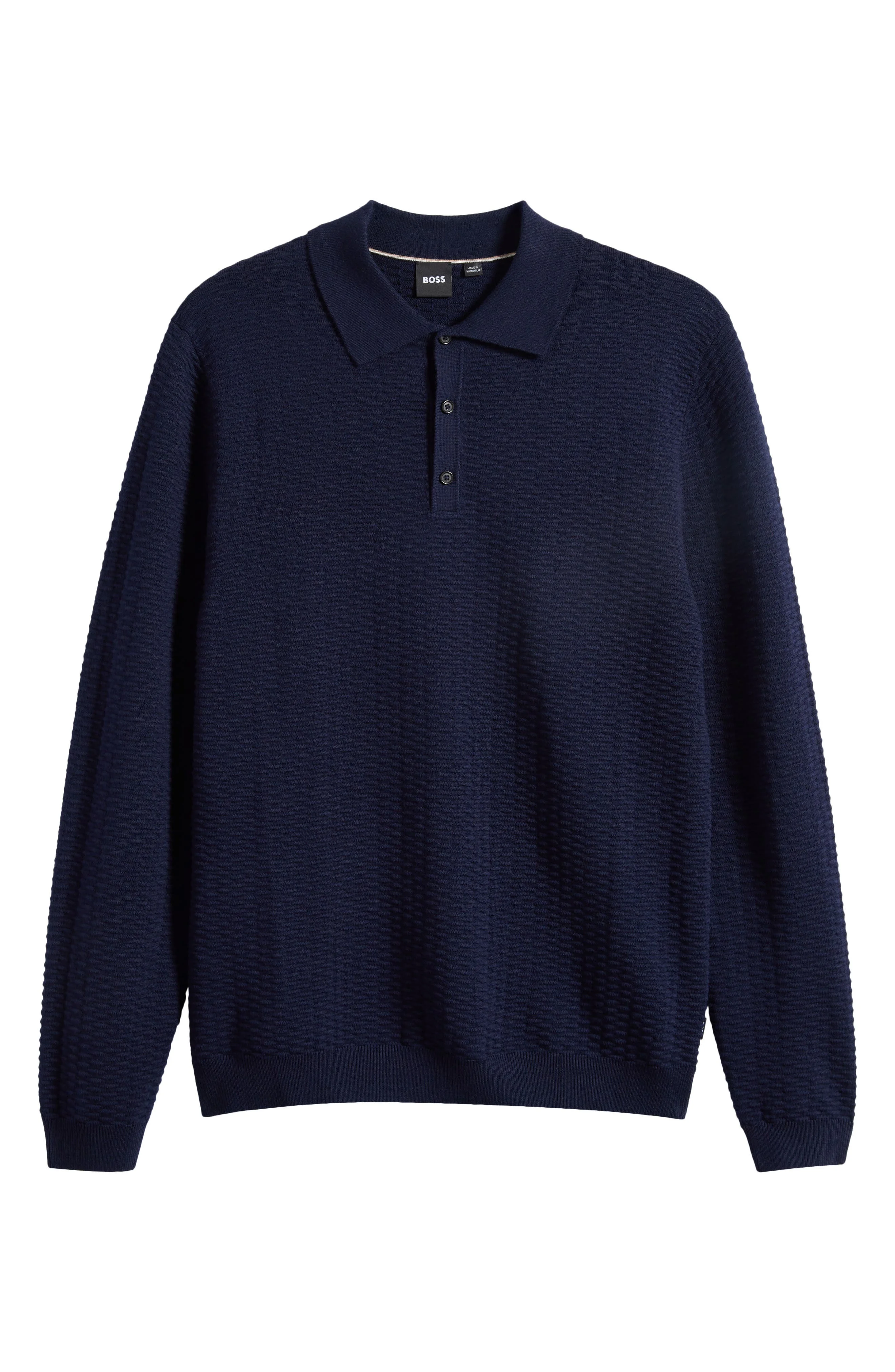 BOSS Diluigi Long Sleeve Virgin Wool Blend Polo Sweater in Dark Blue at Nordstrom