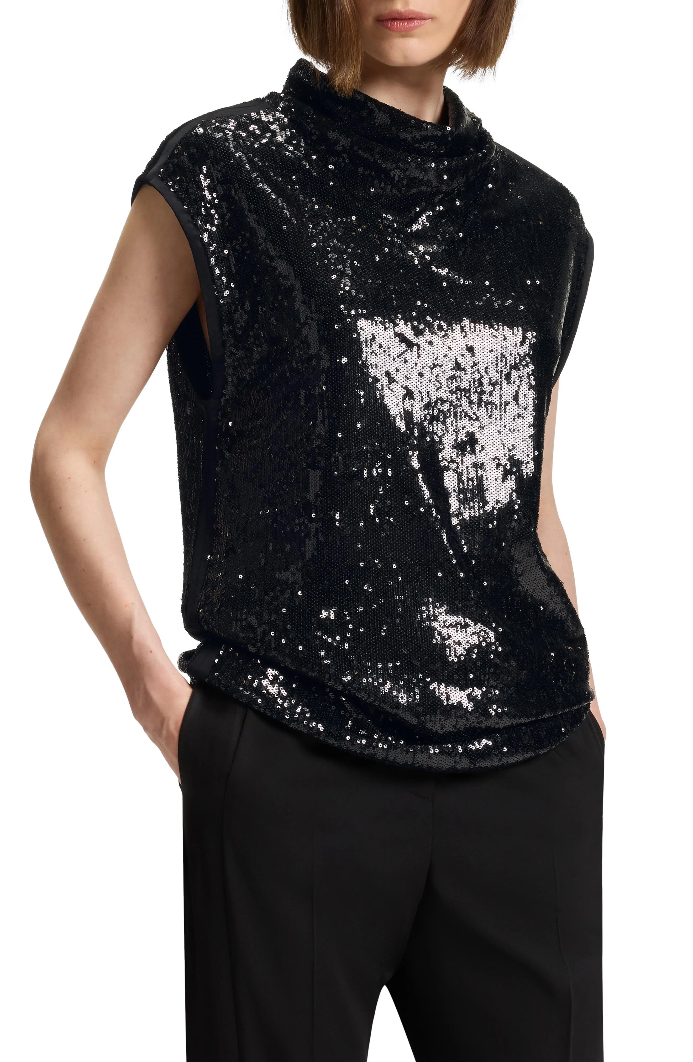 FUNNEL-NECK TOP WITH SEQUIN EMBELLISHMENTS