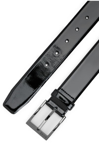 Glossy patent leather brings polish and distinction to a belt that's finished with a burnished pin buckle and styled to elevate any formal or semiformal look. Leather Made in Italy