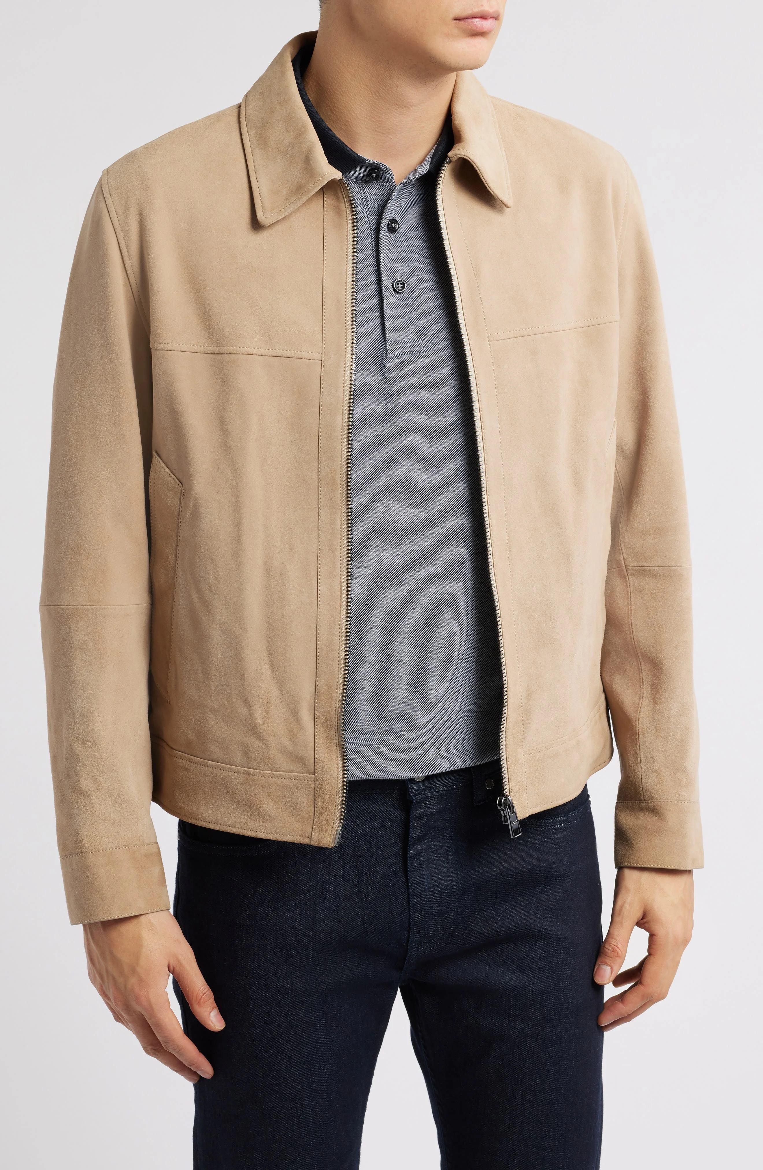 BOSS Malbano Goatskin Suede Jacket in Lt Bge at Nordstrom