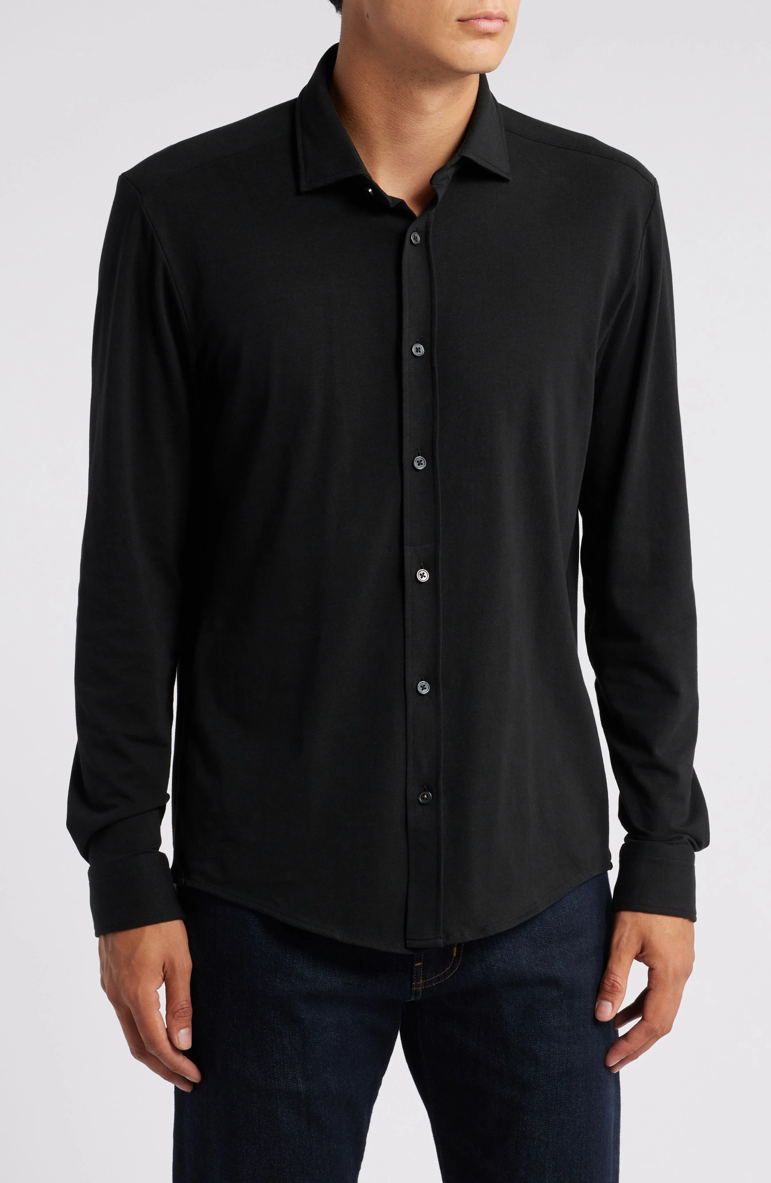 BOSS Roan Solid Stretch Cotton Button-Up Shirt in Blk at Nordstrom