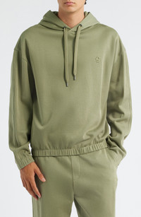 Dropped shoulder seams emphasize the relaxed, layerable fit of a hoodie made of soft, breathable cotton and finished with wrapped elastic ringing the cuffs and hem. Wear it whether you're going out, staying in or packing up for a getaway where staying cozy in the cold is your top priority. Drawstring hood Elastic cuffs and hem 100% cotton Machine wash, line dry Imported