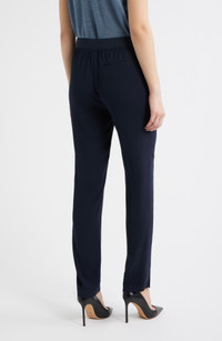 Build out your collection of season-spanning wardrobe essentials with these slim-fit pants cut in a sleek straight-leg style. 31" inseam; 6 1/2" leg opening; 10 1/4" front rise; 14 1/2" back rise Zip fly with button-tab closure Front slant pockets; back welt pockets 100% viscose Dry clean Made in Turkey