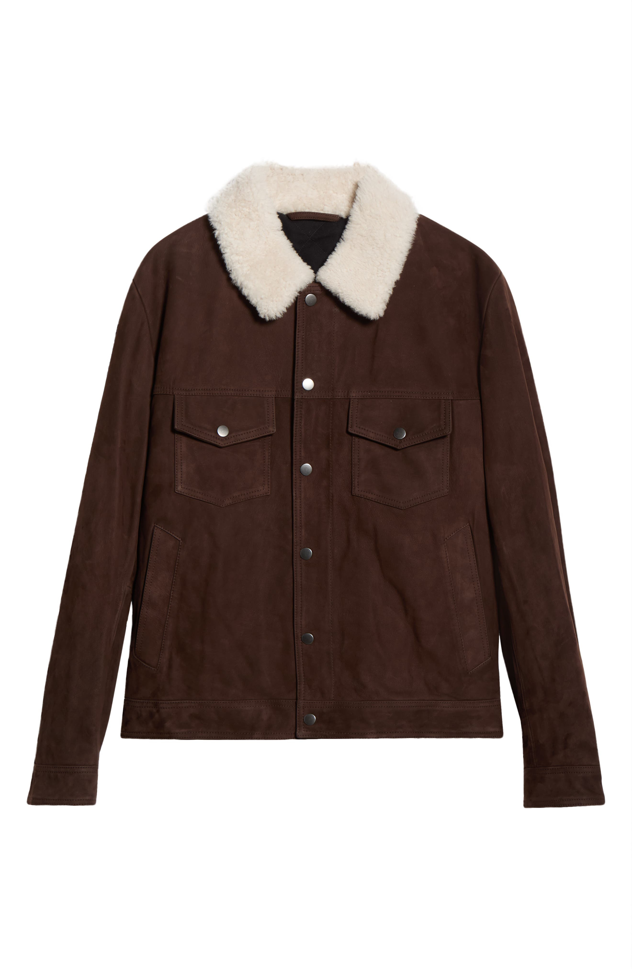 Balancing laid-back attitude with meticulous construction, this suede layer draws from David Beckham’s well-edited wardrobe and sets a plush shearling collar against rich leather for high-contrast texture and cozy insulation. The interior is lined in a cupro-cotton blend that feels smooth, breathes well and moves quietly through the day. Front snap closure Spread collar Chet snap-flap patch pockets; front welt pockets Lined Leather with genuine-shearling (India) contrast Professional leather clean Imported