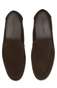 The label's iconic intrecciato weave details the counter of a laid-back loafer crafted from supple Italian suede. Removable insole Leather upper and lining/synthetic sole Made in Italy Designer Shoes