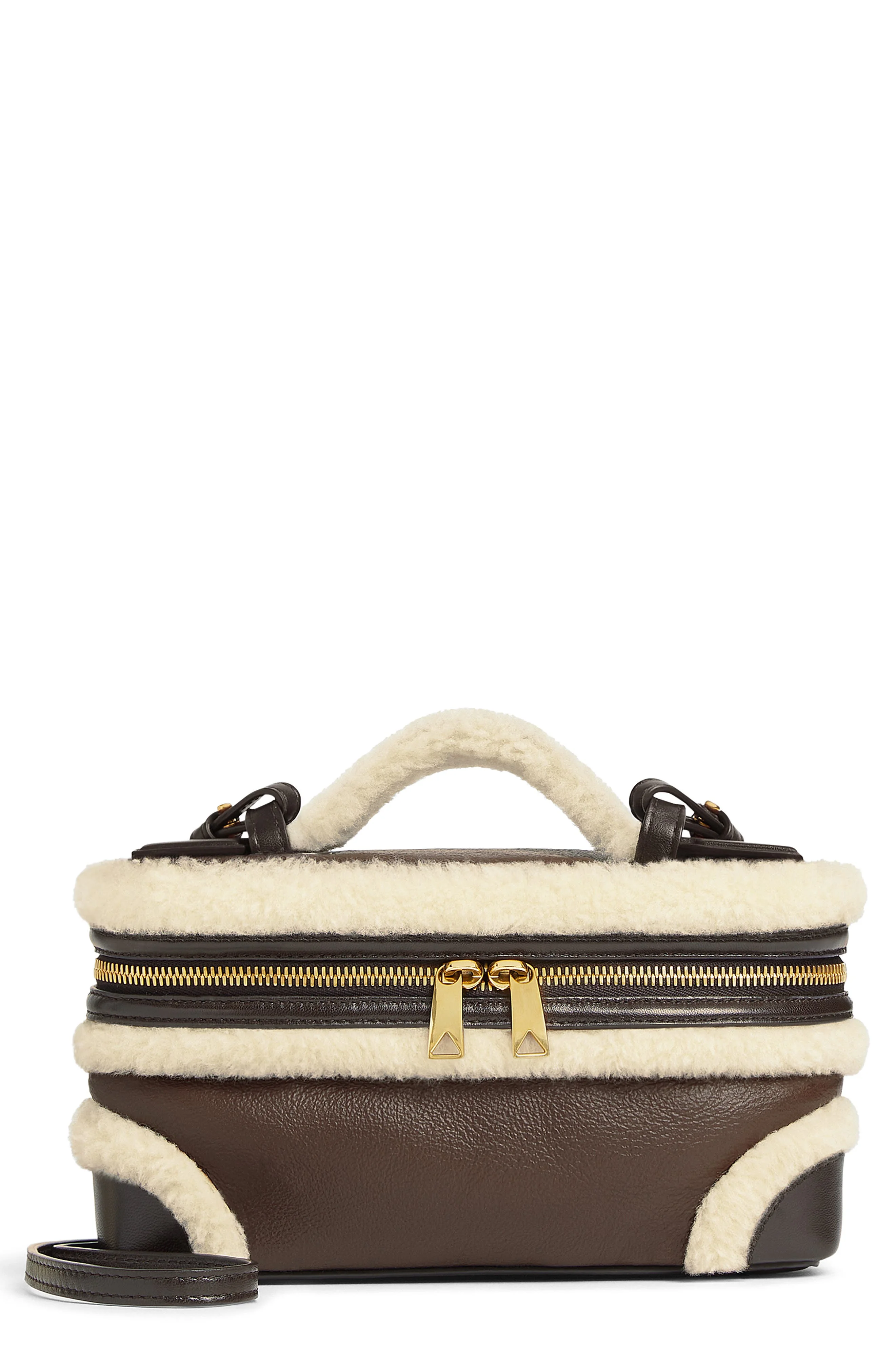 Bottega Veneta Bang Bang Genuine Shearling Trim Leather Vanity Case in 2055 Light Brown Teddy at Nor