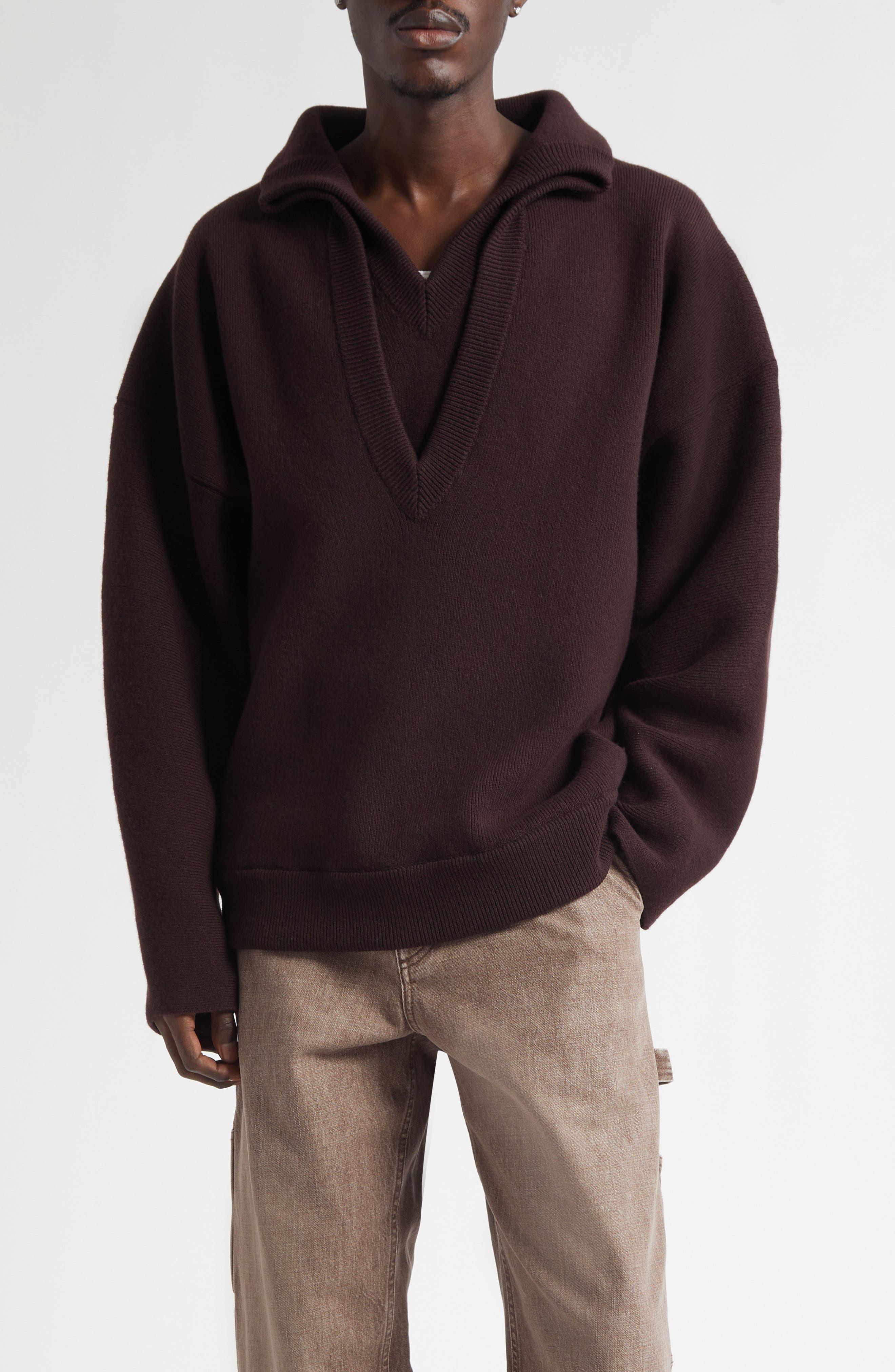 The story begins at the neck where a double-layer V creates gentle structure then relaxes into a softly draped body. Knit from a luxurious wool blend that feels indulgent yet light, it delivers warmth and polish in equal measure. V-neck Long sleeves 93% wool, 6% polyamide, 1% elastane Dry clean Made in Italy Designer Clothing