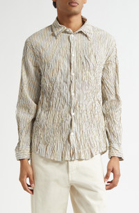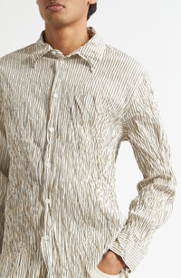 Bottega Veneta Crushed Technical Cotton Poplin Button-Up Shirt in 8773 Beige/White/Black at Nordstro