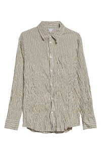 For spring '25, Matthieu Blazy evokes the intimate ritual of rediscovering treasures in a parent’s wardrobe—a story woven seamlessly into this cotton-poplin button-up. The artfully crushed finish radiates the unearthed allure of vintage pieces, while precise stripes inject a refined, contemporary polish to its romantic, timeworn character. Front button closure Point collar Long sleeves with button cuffs Chest patch pocket Curved hem 100% cotton Dry clean Made in Italy Designer Clothing