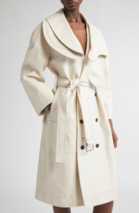 Seen on the spring '25 runway, this lambskin-leather trench coat features one of designer Matthieu Blazy's whimsical animal references—asymmetric lapels shaped and folded to imply a rabbit silhouette. Double-breasted button closure Asymmetric lapels Side welt pockets Removable belt Back vent Lined Leather Professional leather clean Made in Italy Designer Clothing