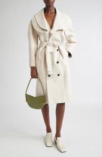 Bottega Veneta Double Breasted Leather Trench Coat in Pale Meringue at Nordstrom