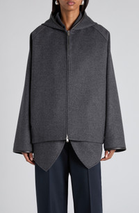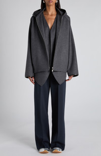 Bottega Veneta Double Face Wool Hooded Jacket in 1307 Charcoal Melange at Nordstrom