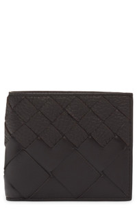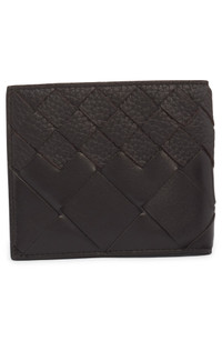 The brand's iconic intrecciato weave—crafted from handwoven strips of grained and smooth Italian calfskin—distinguishes this sleek bifold wallet, enhancing its durable exterior. 3 3/4"H x 4"W x 1/4"D Two interior currency pockets; two slip pockets; eight card slots Leather Made in Italy