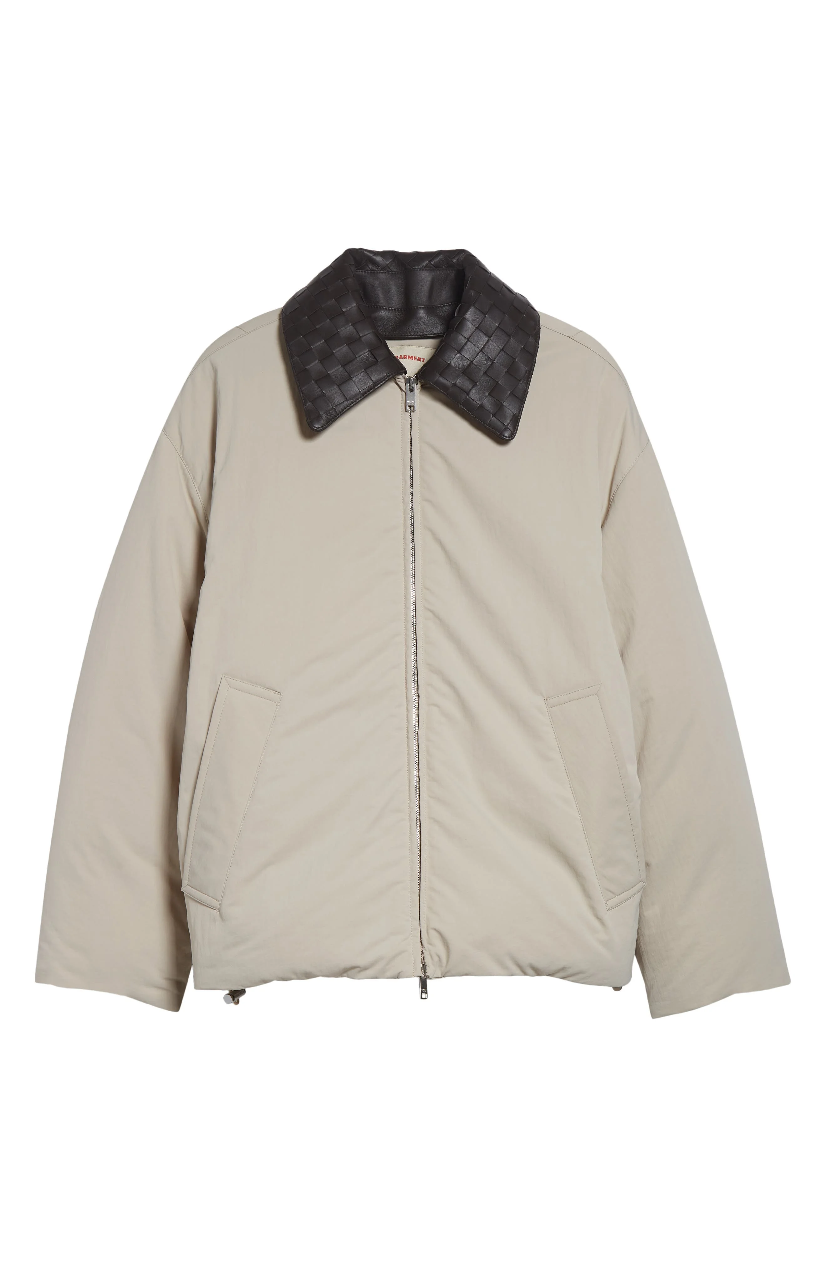 The Milanese label's signature intrecciato technique brings artisanal texture to the removable leather collar of this gently puffed jacket made from technical nylon. Two-way front-zip closure Spread collar Front welt pockets Cotton-twill lining, with synthetic fill 100% polyamide with removable leather collar Dry clean Made in Italy