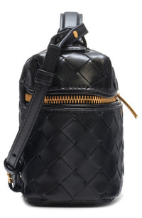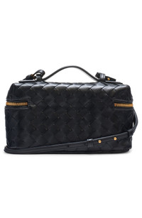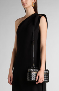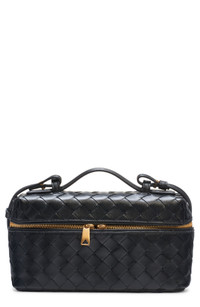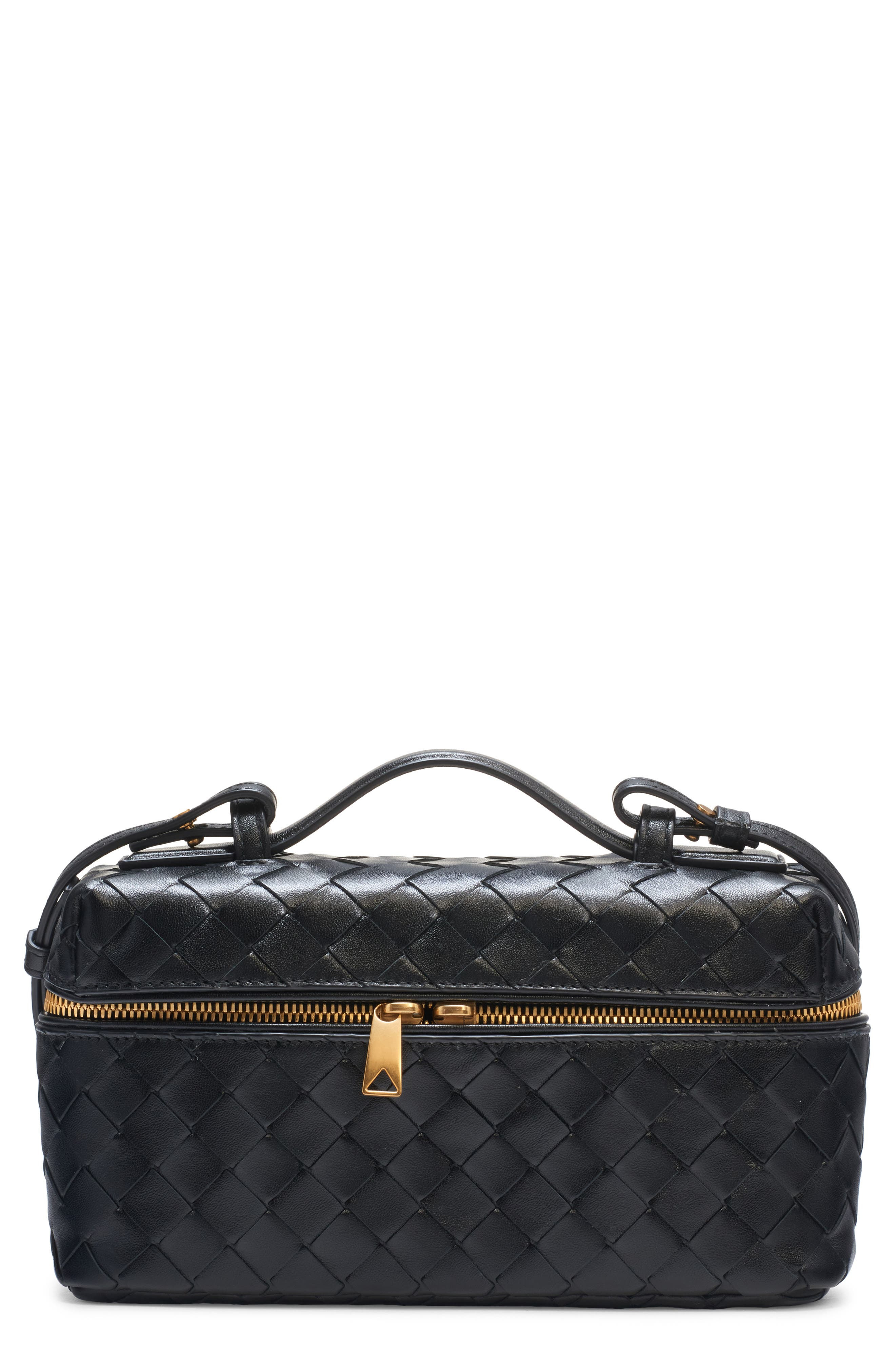 A removable crossbody strap takes this signature handwoven leather vanity case from travel to everyday essential. Two-way top-zip closure Top carry handle; removable, adjustable crossbody strap Structured silhouette with flat base for stability Unlined Leather Made in Italy Designer Handbags