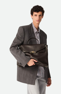 A gleaming knot anchors the pull-through intrecciato strap of a spacious tote crafted from silky calfskin leather. Flap closure Top carry handles; shoulder strap; removable, adjustable crossbody strap Interior zip pocket Suede lining Leather Made in Italy Designer Handbags