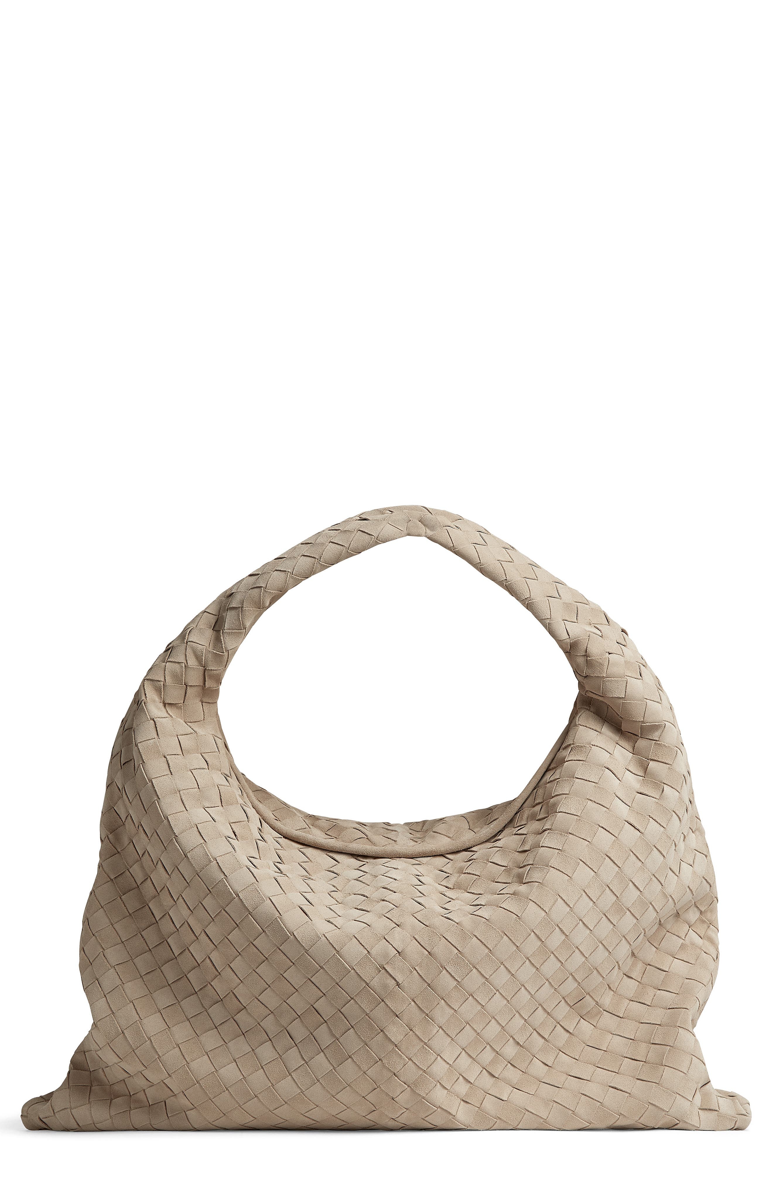 This capacious hobo bag with a slouchy silhouette is handwoven from supple calfskin suede using the Italian house's signature intrecciato technique. Magnetic closure Shoulder strap Interior zip pocket Lined Leather Made in Italy Designer Handbags