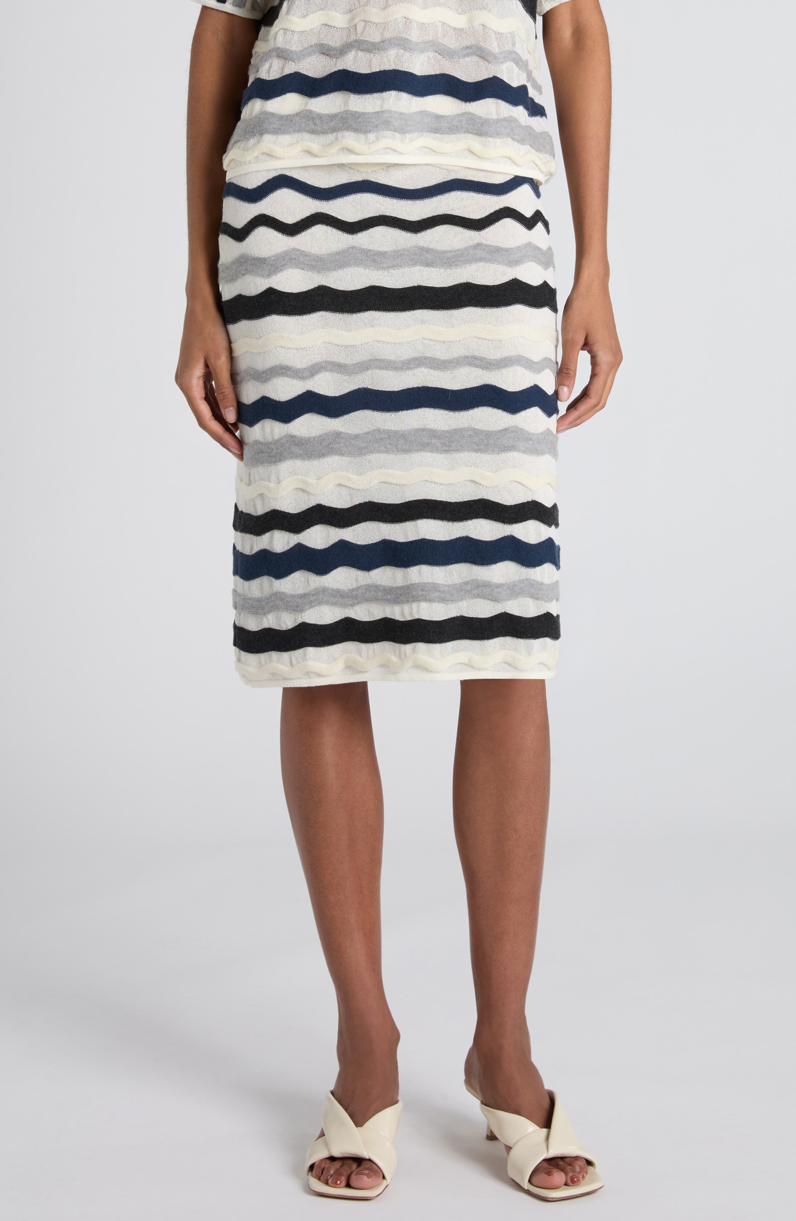 Raised, multicolor chevron stripes highlight the clever construction of this self-lined sweater skirt of two loose-stitched layers knit from a lightweight wool blend. Pull-on style 67% wool, 27% cotton, 6% polyamide with 83% wool, 16% polyamide, 1% elastane trim Dry clean Made in Italy Designer Clothing