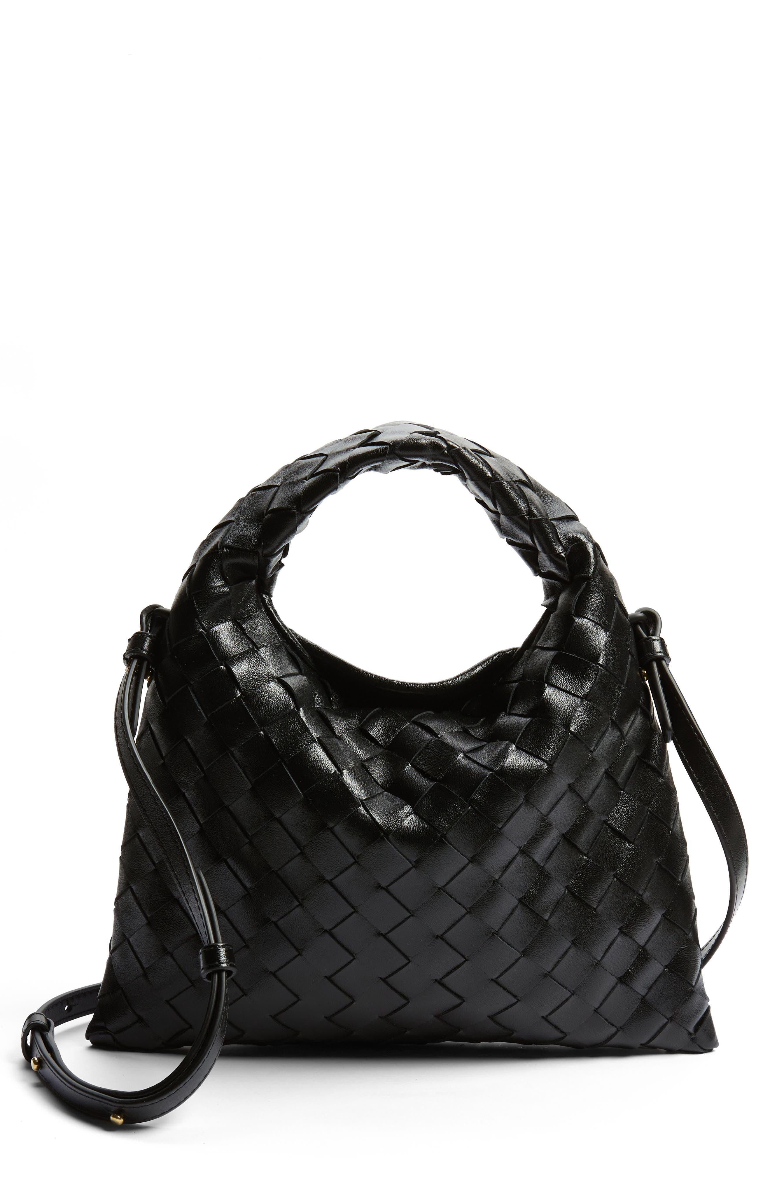 Bottega Veneta Mini Hop Intrecciato Leather Hobo Bag in Black Brass/Black at Nordstrom