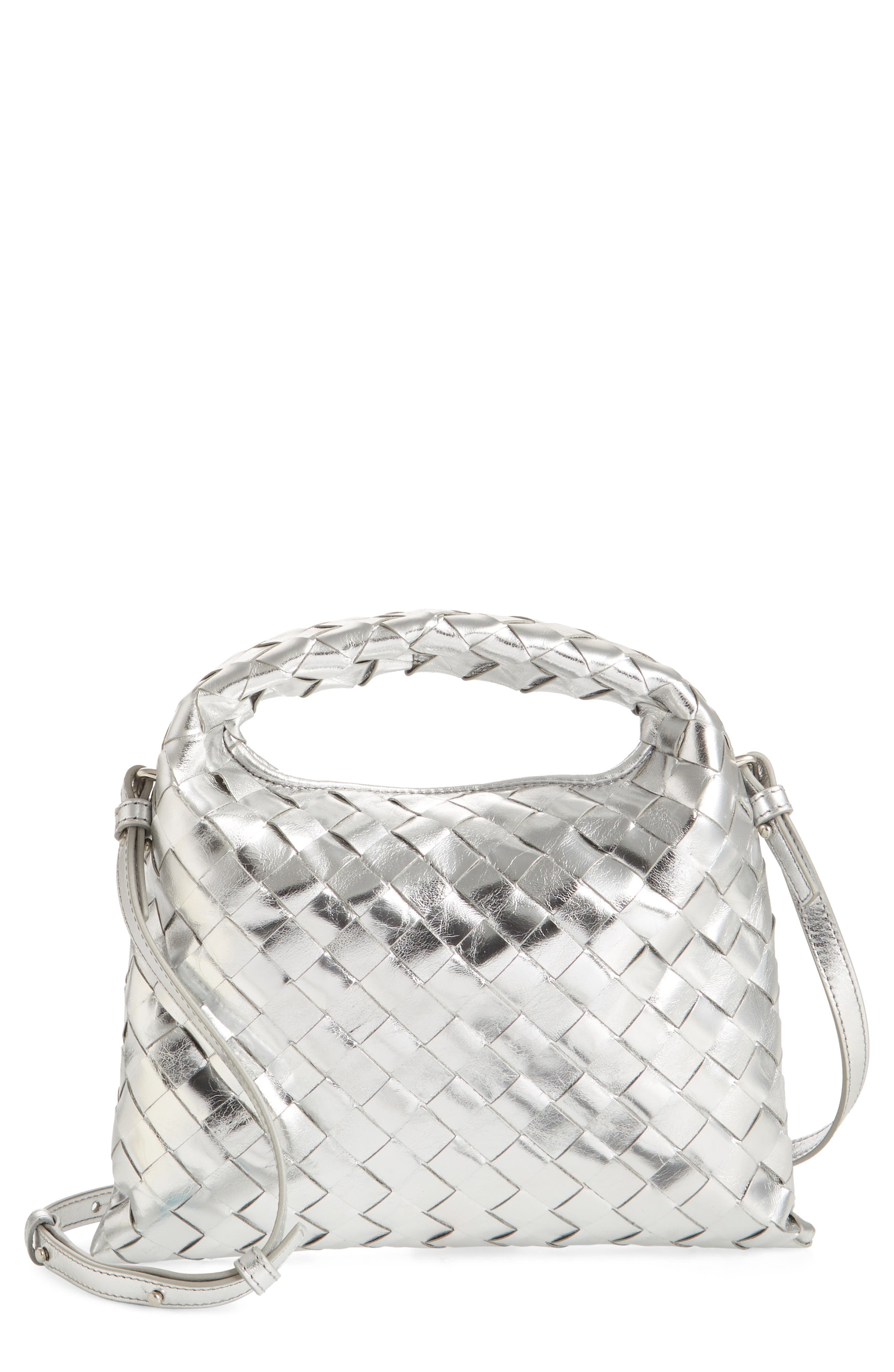 Bottega Veneta Mini Hop Mirror Intrecciato Leather Hobo Bag in 8101 Silver/Silver at Nordstrom