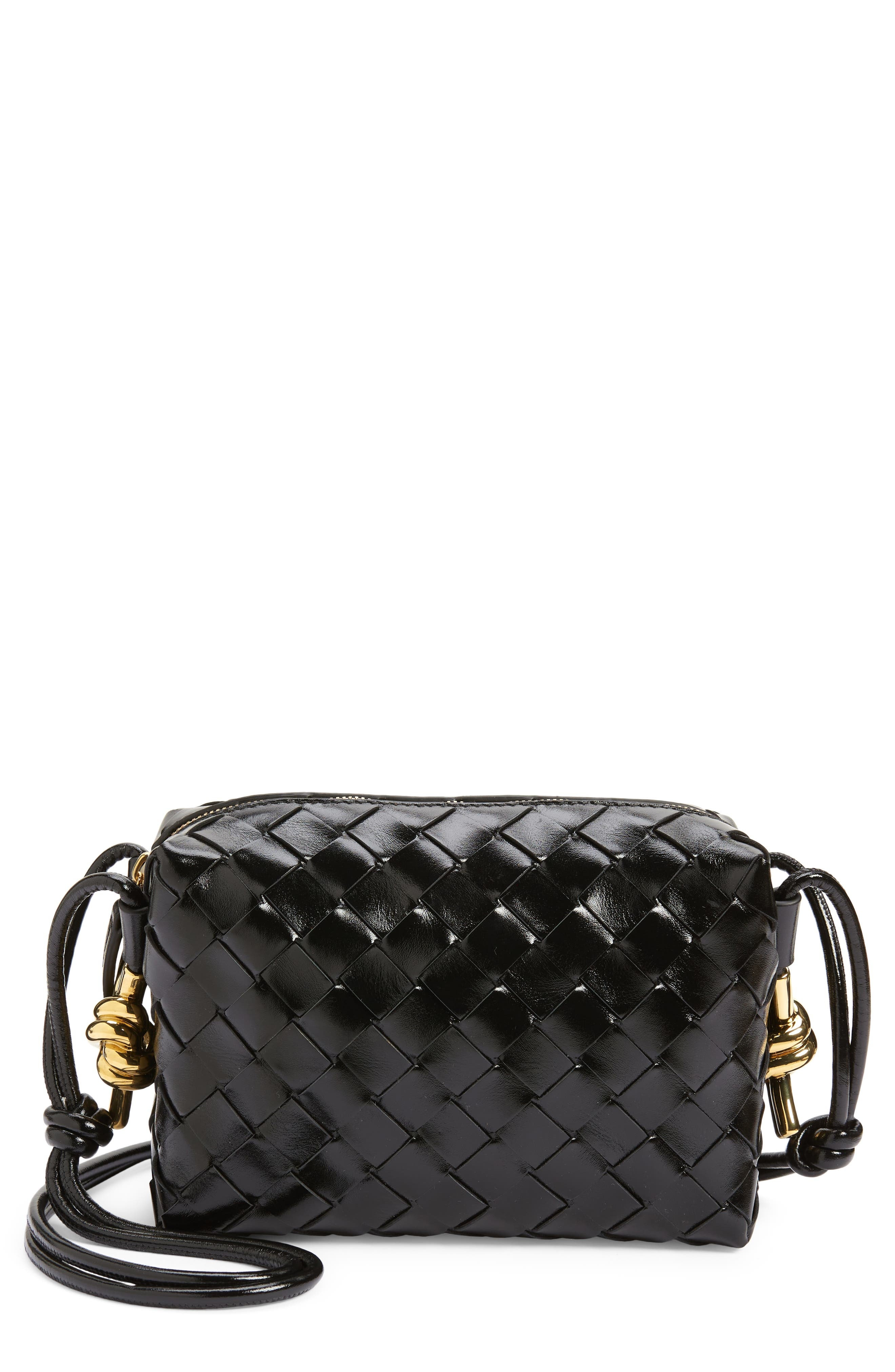 Gleaming knot hardware and the signature intrecciato weave—key elements of the maison's DNA—distinguish this fresh-for-the-season crossbody bag. Top zip closure Crossbody strap Leather Made in Italy Designer Handbags