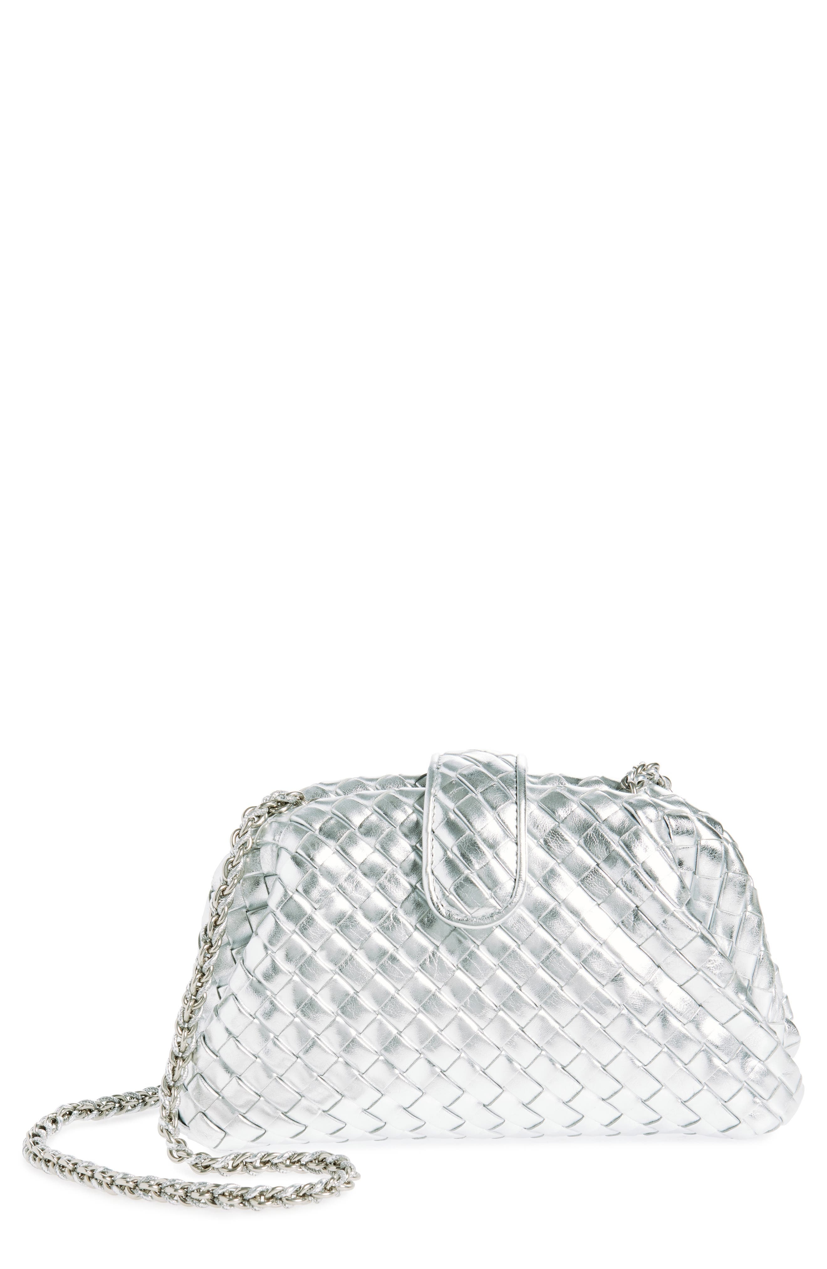 Bottega Veneta Mini Lauren 1980 Intrecciato Metallic Leather Clutch in Silver/Silver at Nordstrom