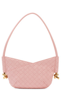 Gleaming knots—a signature house code—anchor the tubular shoulder strap of this lambskin-leather hobo bag crafted with the label's iconic intrecciato weave. Top zip closure Adjustable shoulder strap Leather Made in Italy Designer Handbags