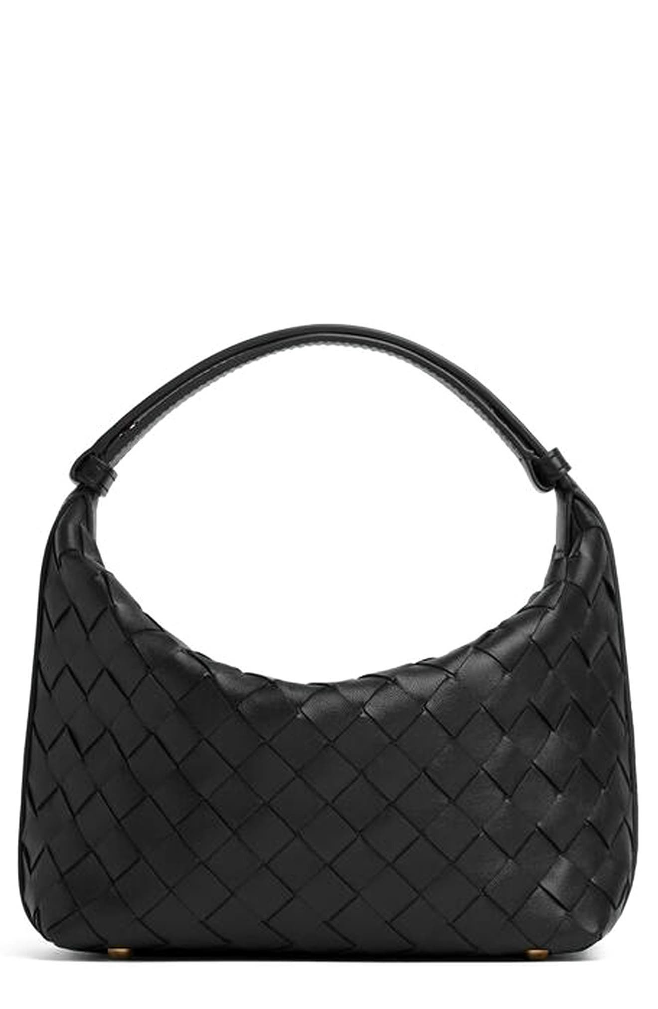 The Italian label's iconic intrecciato weave brings rich texture to this compact bag wrapped with a leather strap that adjusts for hand-held or shoulder carry. Top zip closure Adjustable shoulder strap Protective metal feet Leather lining Leather Made in Italy Designer Handbags
