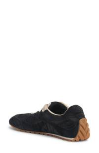 Swooping suede overlays detail the nylon upper of this retro lace-up sneaker set on a low-profile sole with overlapping V-shaped treads. Lace-up style Leather and textile upper/leather lining/rubber sole Made in Italy Designer Shoes