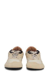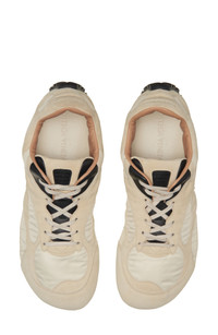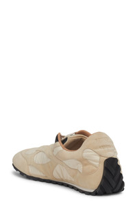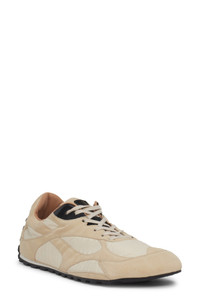 Swooping suede overlays detail the nylon upper of this retro lace-up sneaker set on a low-profile sole with overlapping V-shaped treads. Lace-up style Leather and textile upper/leather lining/rubber sole Made in Italy Designer Shoes