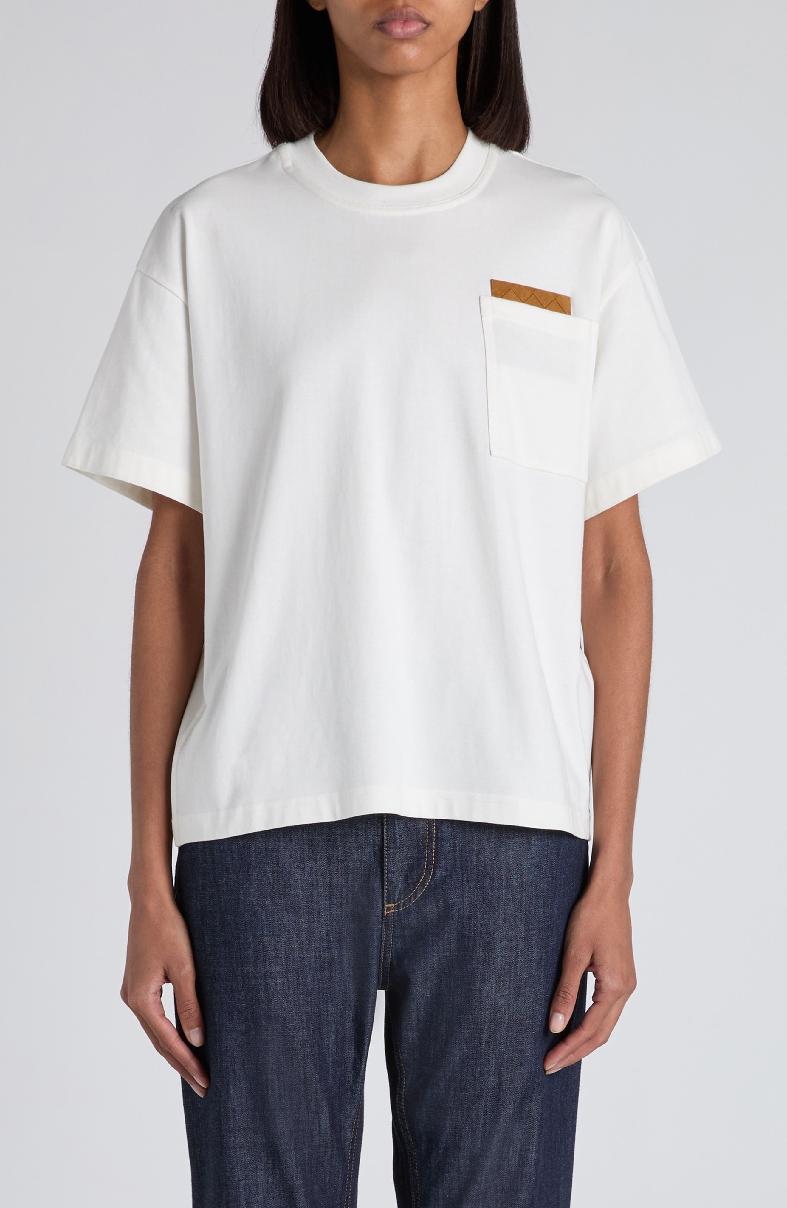 Bottega Veneta Pima Cotton Pocket T-Shirt with Intrecciato Suede Patch in 9071 Chalk at Nordstrom