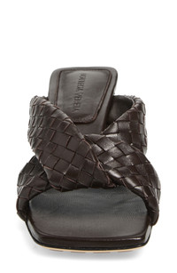 Woven from supple lambskin leather in the label's iconic intrecciato design, this Italian-crafted sandal features twisted straps and a low kitten heel. A rubber-injected leather sole enhances the comfort and stability of this square-toe style. 2" (50mm) heel Leather upper and lining/leather and rubber sole Made in Italy Designer Shoes