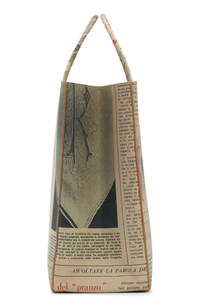 Inspired by a classic shopping bag, this rolled-handle tote is crafted of calfskin leather patterned in a vintage newspaper print. Open top Top carry handles Structured silhouette with flat base for stability Unlined Leather Made in Italy Designer Handbags