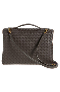 The label's fan-favorite vanity case gets updated in a slenderized profile handcrafted from supple piccolo lambskin leather using the instantly recognizable Intrecciato technique. 7" x 10 1/4" x 1 1/2" 1" handle drop; 19 1/2" shoulder strap drop Two-way front-zip closure Top carry handle; removable, adjustable shoulder strap Interior wall pocket; six card slots Lambskin-leather lining Leather Made in Italy Designer Handbags
