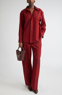Bottega Veneta Subtle Stripe Wool Blend Pants in Red/Grey Melange at Nordstrom