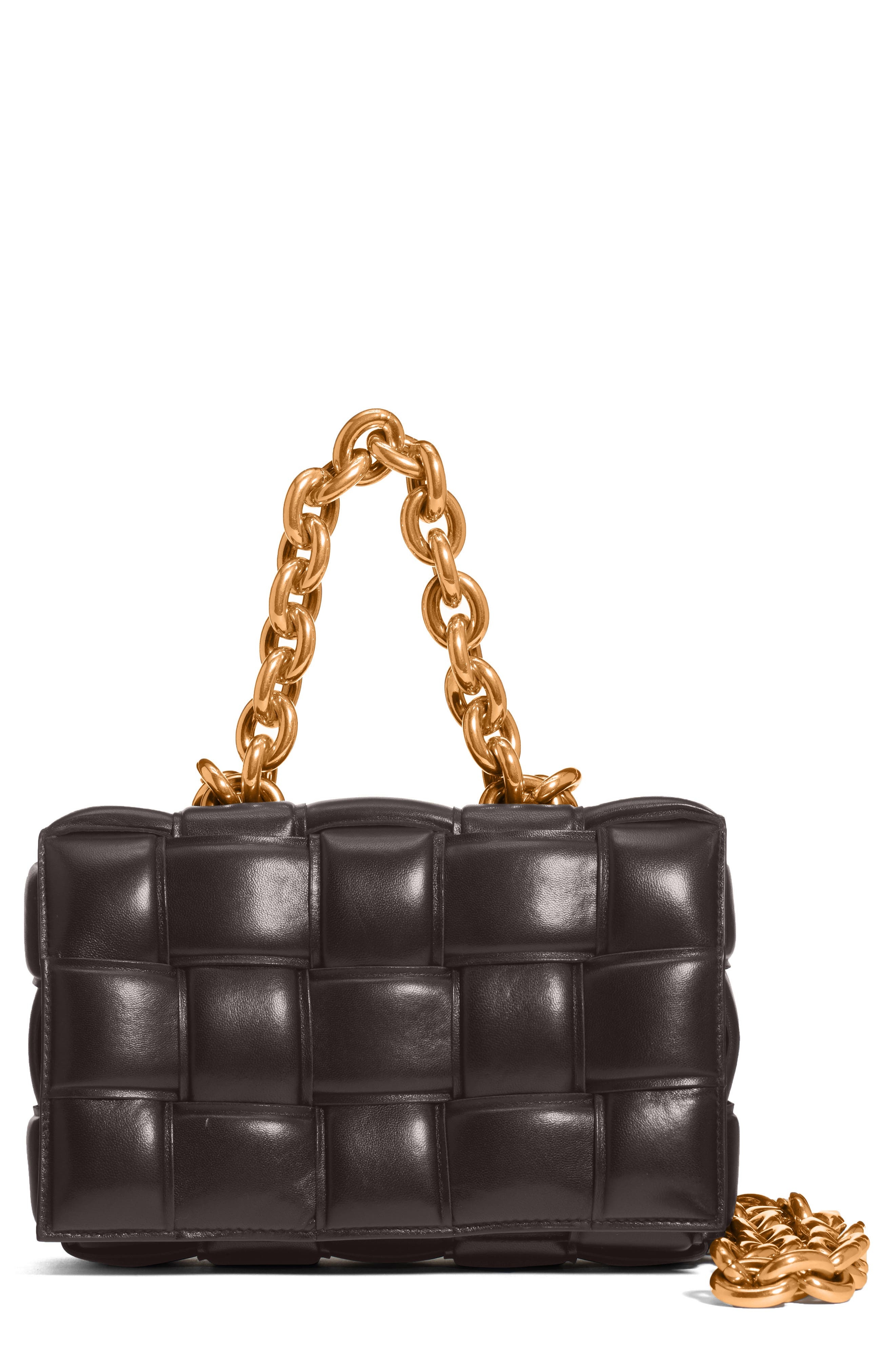 Lavish padding brings eye-catching dimension to the brand's iconic intrecciato weave on this boxy bag crafted in Italy from supple nappa leather. A chunky chain handle adds an edgy flourish to the pristine look. Magnetic flap closure Chain handle Interior zip pocket Leather Made in Italy