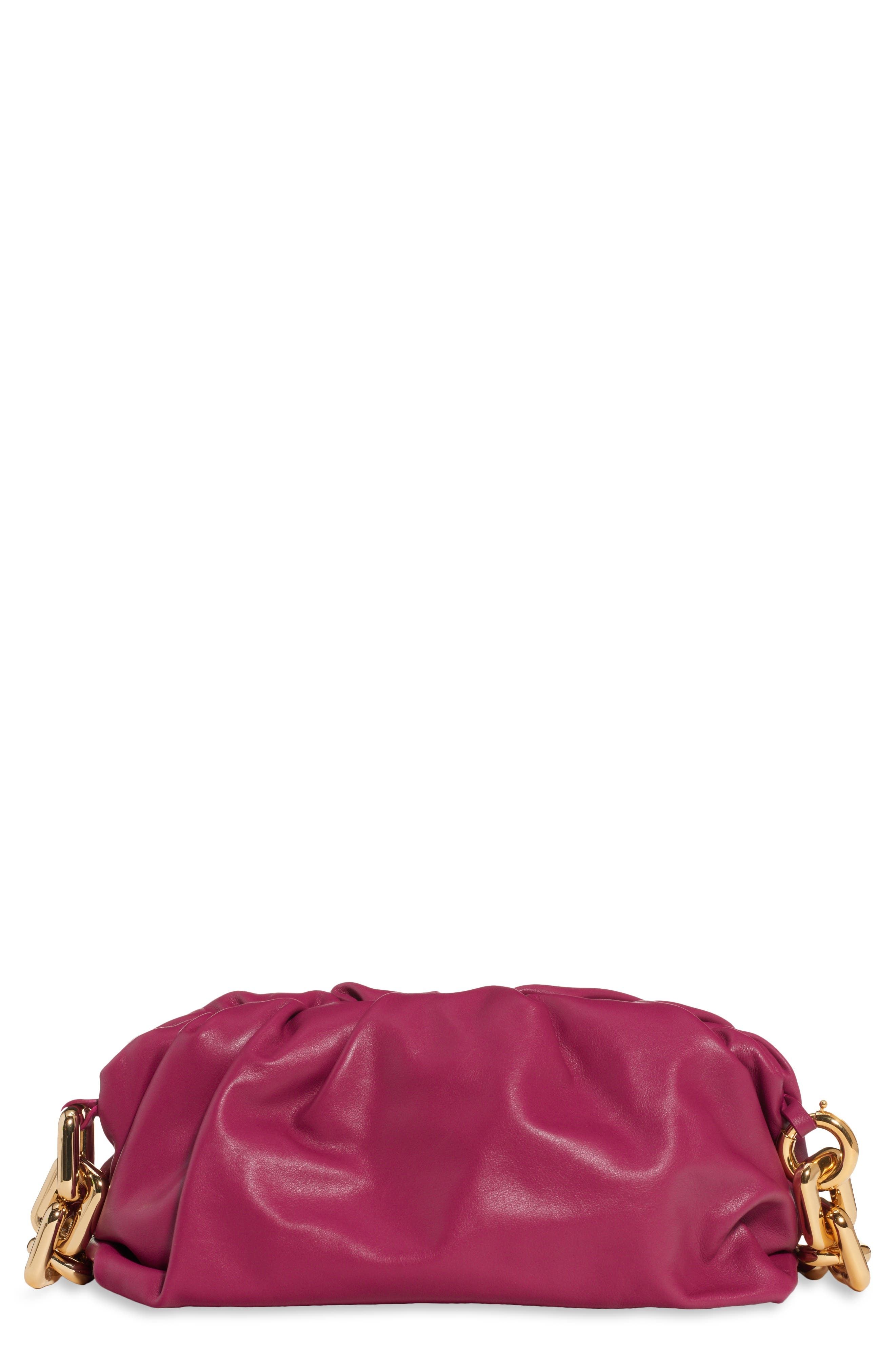 Bottega Veneta updates its cult leather bag with a chunky chain strap—each link is sculpted individually before it's assembled and polished by master jewelers. A magnetic frame enveloped in folds creates the soft, voluminous shape, combining the brand's heritage craftsmanship with a contemporary sensibility. Magnetic frame closure Chain shoulder strap Leather Made in Italy Designer Handbags