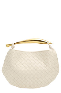 The brand's iconic intrecciato weave, handwoven from strips of lambskin, textures this softly structured hobo bag topped with a sculptural metallic handle. Magnetic closure Top carry handle Unlined Leather Made in Italy Designer Handbags