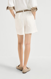 Garment-dyed cotton and linen cover baggy shorts with monili
