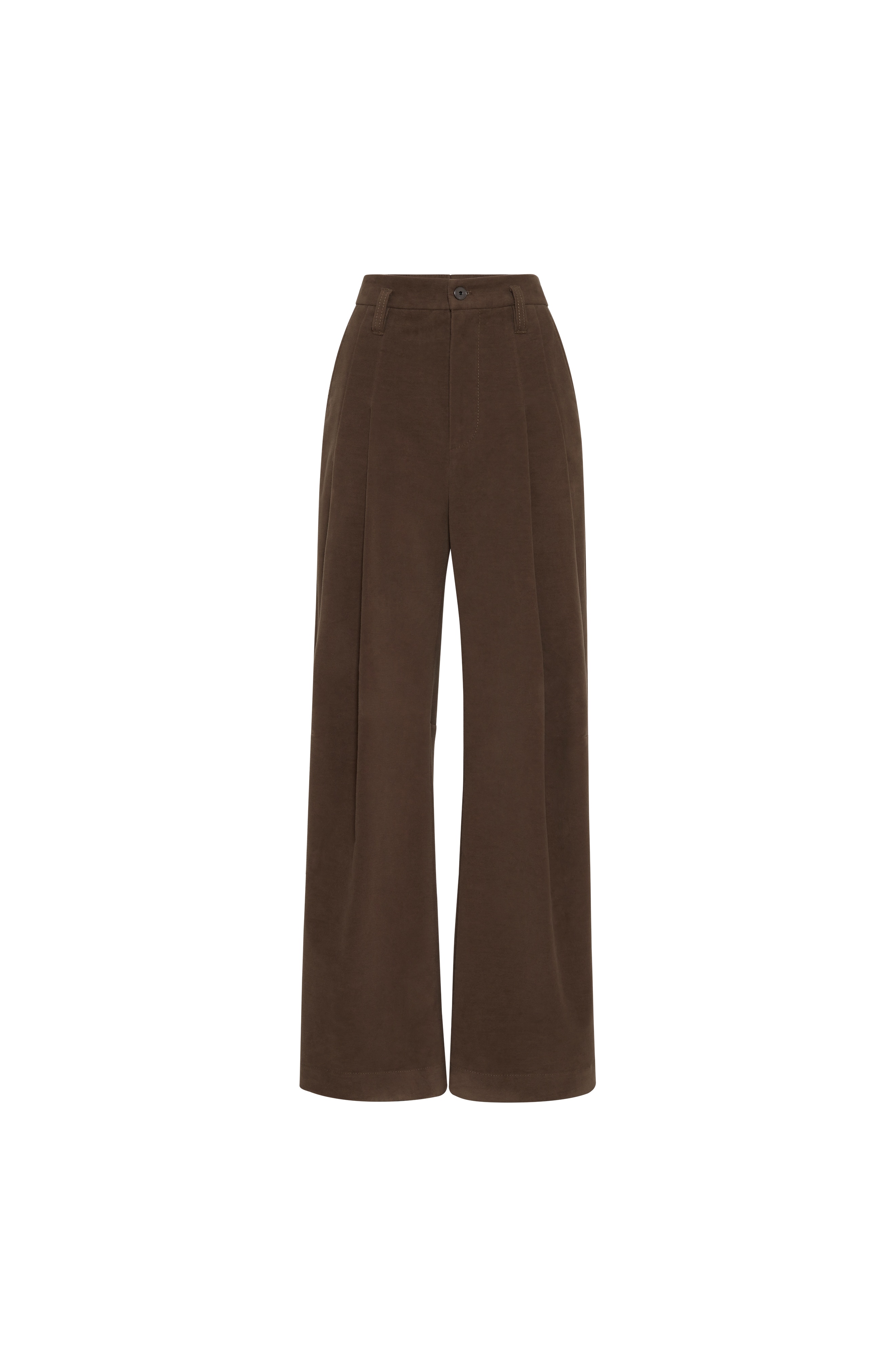 Stretch cotton moleskin is a compact, velvety fabric that features a matte surface that is soft to the touch. Warm and cozy, it has a small percentage of elastic fiber to provide added comfort. Zip closure with buttonFront pockets with watch pocketDouble pleatBack patch pocketsNickel-free monili decoration