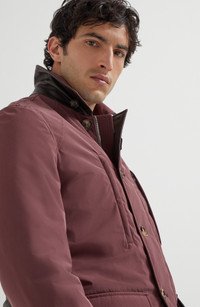 The nylon is a lightweight fabric equipped with a thin synthetic inner membrane that provides weather-resistance without compromising breathability. Double closure with zip and buttons Collar may be worn raised Upper zip pockets Patch hand pockets with flap and button Adjustable button cuffs Lined Two interior pockets with button closure and pen holder Adjustable belt with loops Thermore® padding