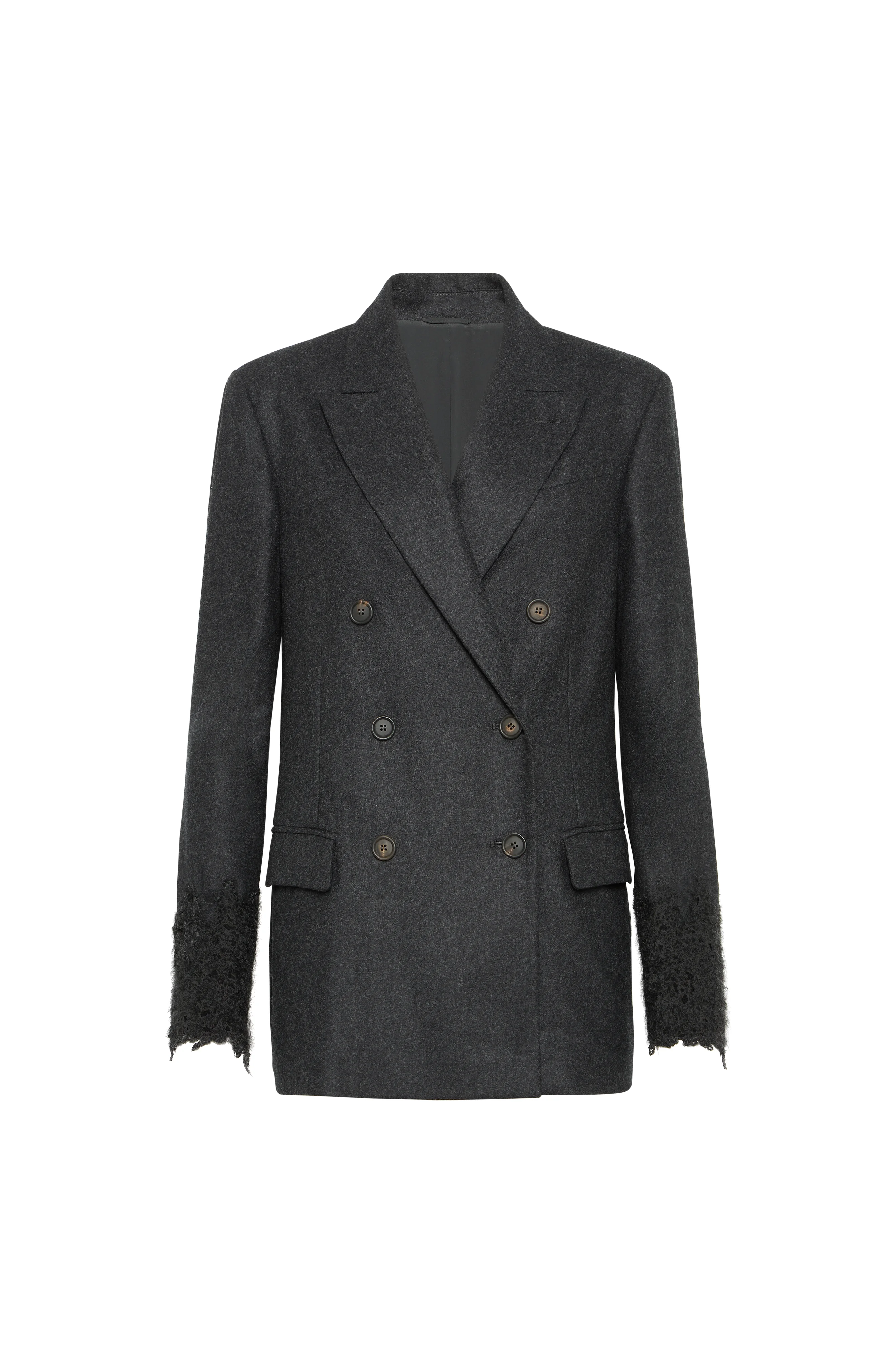 Brunello Cucinelli Blazer with wispy lace cuffs in Dark Grey at Nordstrom